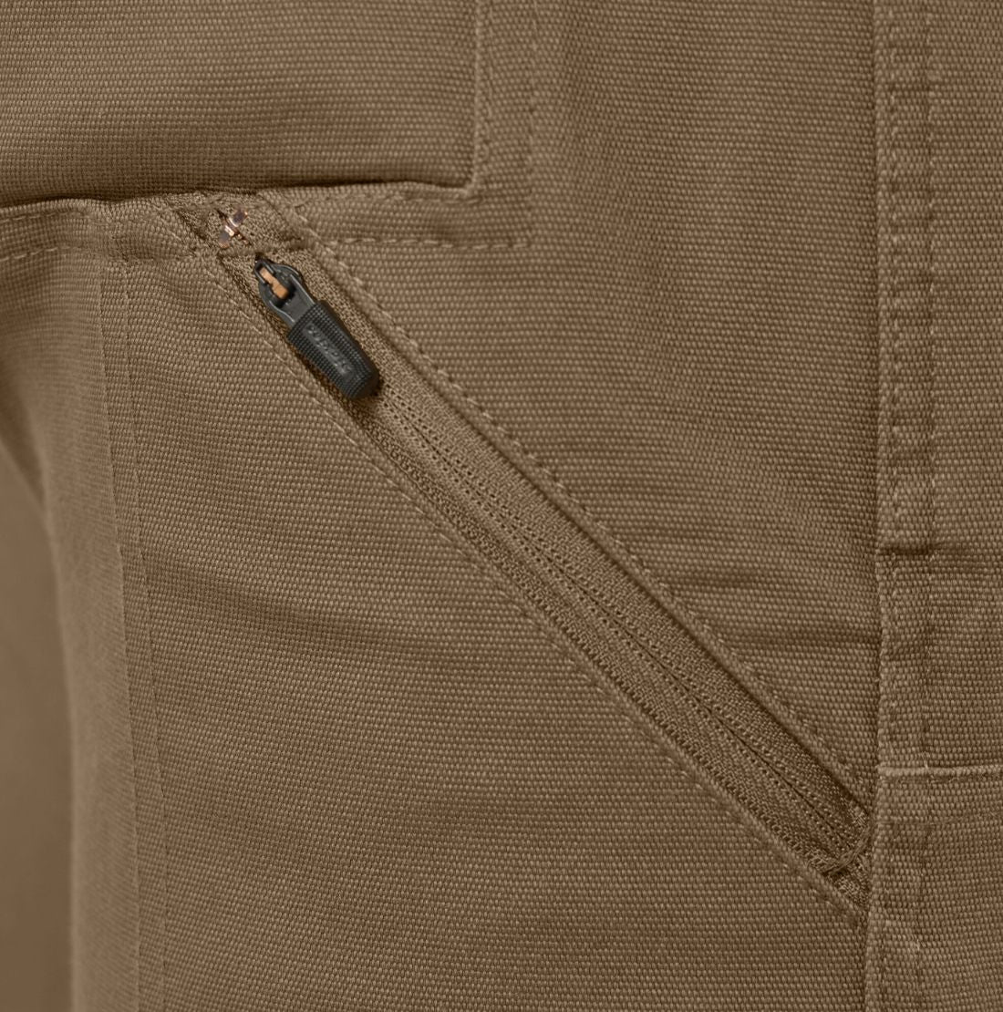 • Poches de charpentier encastrées, poche arrière zippée