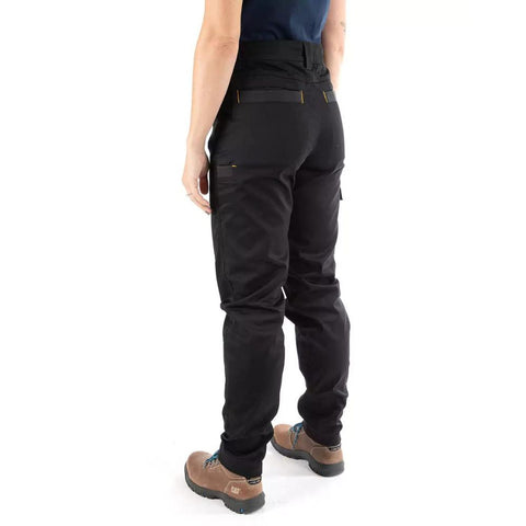 CAT a conçu le pantalon de travail Elite Operator pour les femmes qui utilisent des machines lourdes. Conçu sur mesure pour le travail, le pantalon utilise un mélange de sergé à la fois résistant et flexible. Ce pantalon de travail confortable à la coupe ajustée intègre également des panneaux extensibles à la taille et à l'ourlet inférieur, avec une taille mi-haute et une ouverture de jambe fuselée.
