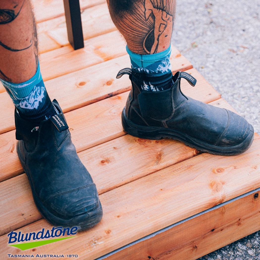 Blundstone 165, la botte Met Guard Triangle vert en noir. Protection intégrale pour les pieds et confort Blundstone. La botte de protection Blundstone par excellence.
